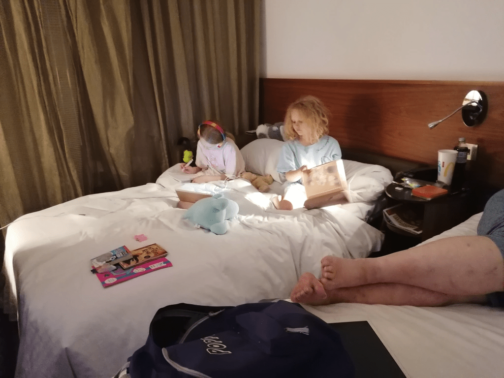 The car park entrance is tight. I pulled up, against a intercom post thinking I need to talk to the hotel reception, which I didn’t as it turned out, but ended up scraping my back wheel arch against the post due to the entry angle. Thought I had caught it in time but clearly not. There’s an expensive trip to the body shop on top of the £119 room rate for a family room including breakfast. That was the best rate we found for the bank holiday Sunday.