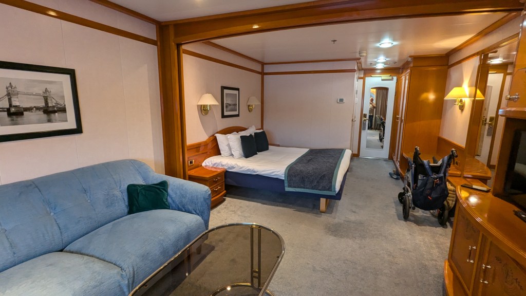That all sounds splendid – but any downsides? Well, apart from the prices in the restaurant, our only slight beef would be the lack of a proper disabled / accessible toilet. Apparently the toilets on floor 5 were wider and easy to enter with a wheelchair, but it still meant I have to endure my pet hate of walking into the ladies toilet with Sue, which always seems a little strange and embarrassing for me.